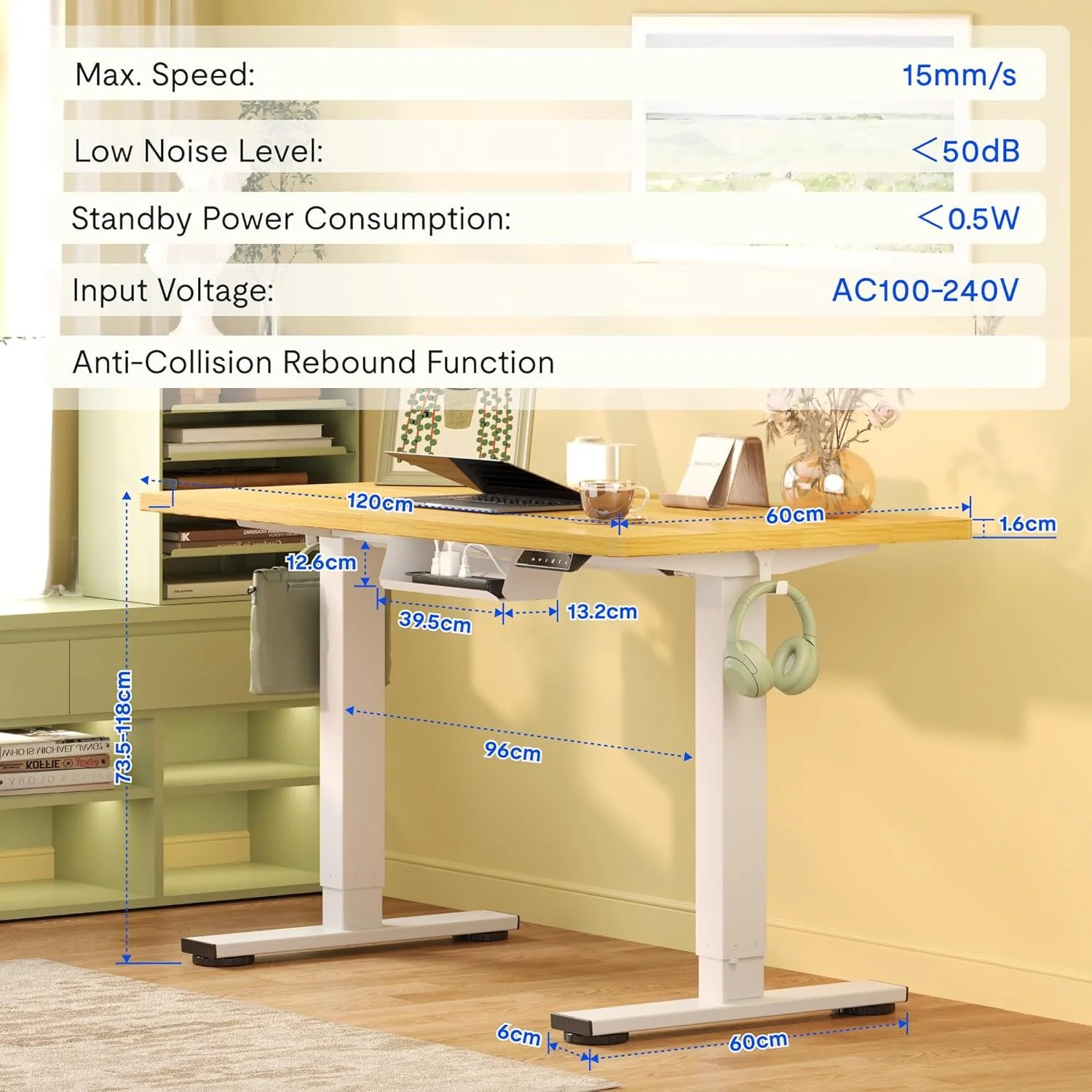 Electric Height Adjustable, 120x60cm, White Frame + Table Top. Heavy Duty Construction. Control Panel with Memory Functions. Quick Assembly.