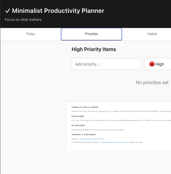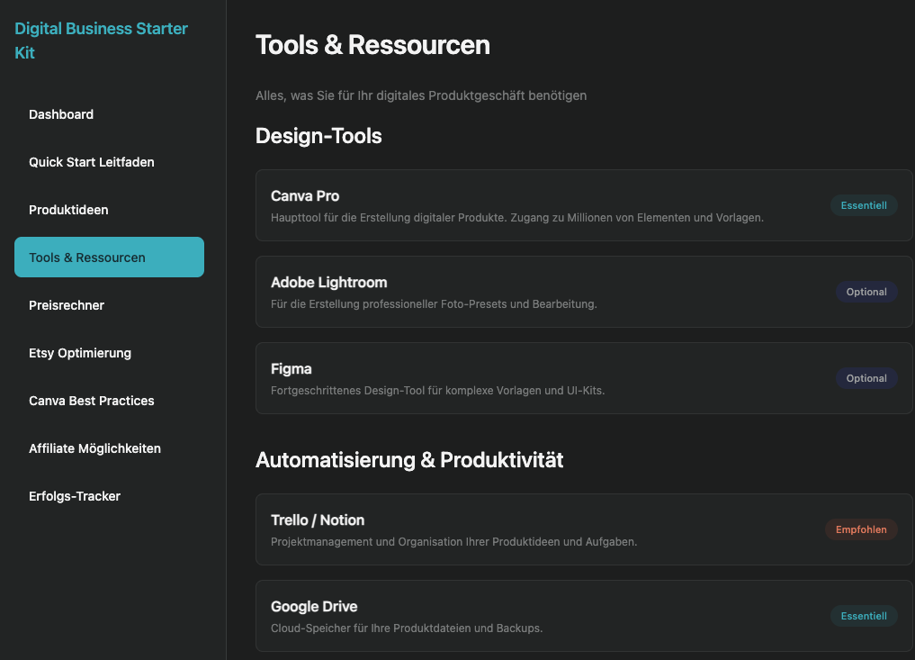 Shop Now Buy on Amazon Discover Effortless Passive Income—Turn Your Ideas Into Digital Profits Today! Shop Categories: All Interactive DE / AT / CH Interactive Planner EN Printable Planners E-Book Branding Kit All | Interactive DE / AT / CH | Interactive Planner EN | Printable Planners | E-Book | Branding Kit | Digital Business Starter Kit (HTML) | Canva & Etsy Leitfaden | Komplettes Online-Business System | Deutsch | Produktideen, Tools, Preisrechner, Checklisten Sale Minimalist Productivity Planner: Simple Tasks, Priorities, Habits & Notes—Clean Design Sale Creative Content Creator Planner: Calendar, Ideas, Platform Management & Analytics Sale Wellness & Self-Care Journey Planner: Mood Tracker, Activity Logger, Goals & Journal Sale Customizable Modular Planner: Create Your Perfect Planning System with Templates Sale Smart Business & Side Hustle Planner: Complete Project, Revenue, Expense & Client Management with Backup Sale Master your entire life with 6 powerful tools: tasks, goals, habits, budget, meals, fitness & backup Sale Classic Minimalist 2026 Annual Planner (PPTX) Sale Ultimate 2026 Visionary Yearly Planner (Fully Customizable PPTX) Sale Beige Earthy Brand Style Guide Business Presentation Sale Vibrant Colorful Brand Style Guide | Fun Creative Business Branding Kit | Bold Modern Brand Identity Sale Green Business Branding Kit | Eco Brand Style Guide | Nature-Inspired Brand Identity Template Sale Bold Orange Black Business Branding Kit | Modern Brand Style Guide | Tech Startup Brand Identity Sale